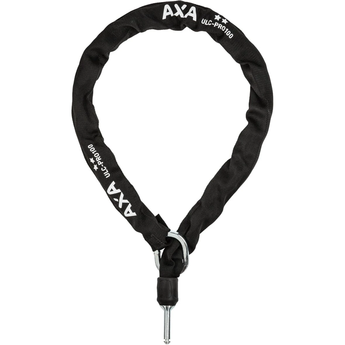 For ekstra sikkerhed er det vigtigt at fastgøre din cykel til et fast objekt. På denne måde kan en tyv ikke hente din cykel og tage den til et roligt sted for at åbne låsen. Den ideelle løsning til dette er ULC Pro-plug-in halskæde. Med denne kæde betjener du ringlåsen og halskæden med kun 1 nøgle. Det passer i Axa Imenso og blokerer XXL Ring -låse. Linkene på linkene er 8 mm, den hærdede stålplug-in pin er 10 mm tyk, og den har en kunst 2-stjernet godkendelse. Det har en længde på 100 cm og har en sort polyesterafdækning for at beskytte cyklen mod ridser.