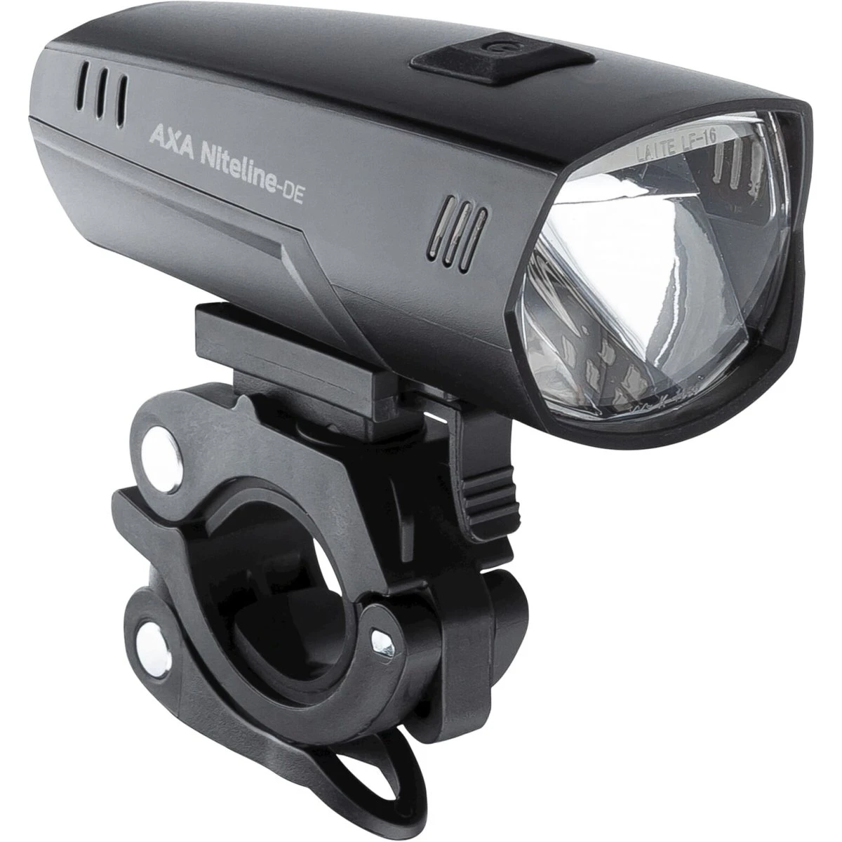 Axa lygtesæt Niteline DE, forlygten har 35 lux og kan let monteres med en klemme på rattet, det fungerer på 3x AAA -batterier og har derfor en brandvarighed på 5 timer, NYX baglys fungerer på 2x AAA, de Begge har en næsten tom indikator, så du ved, hvornår du skal udskifte dem.