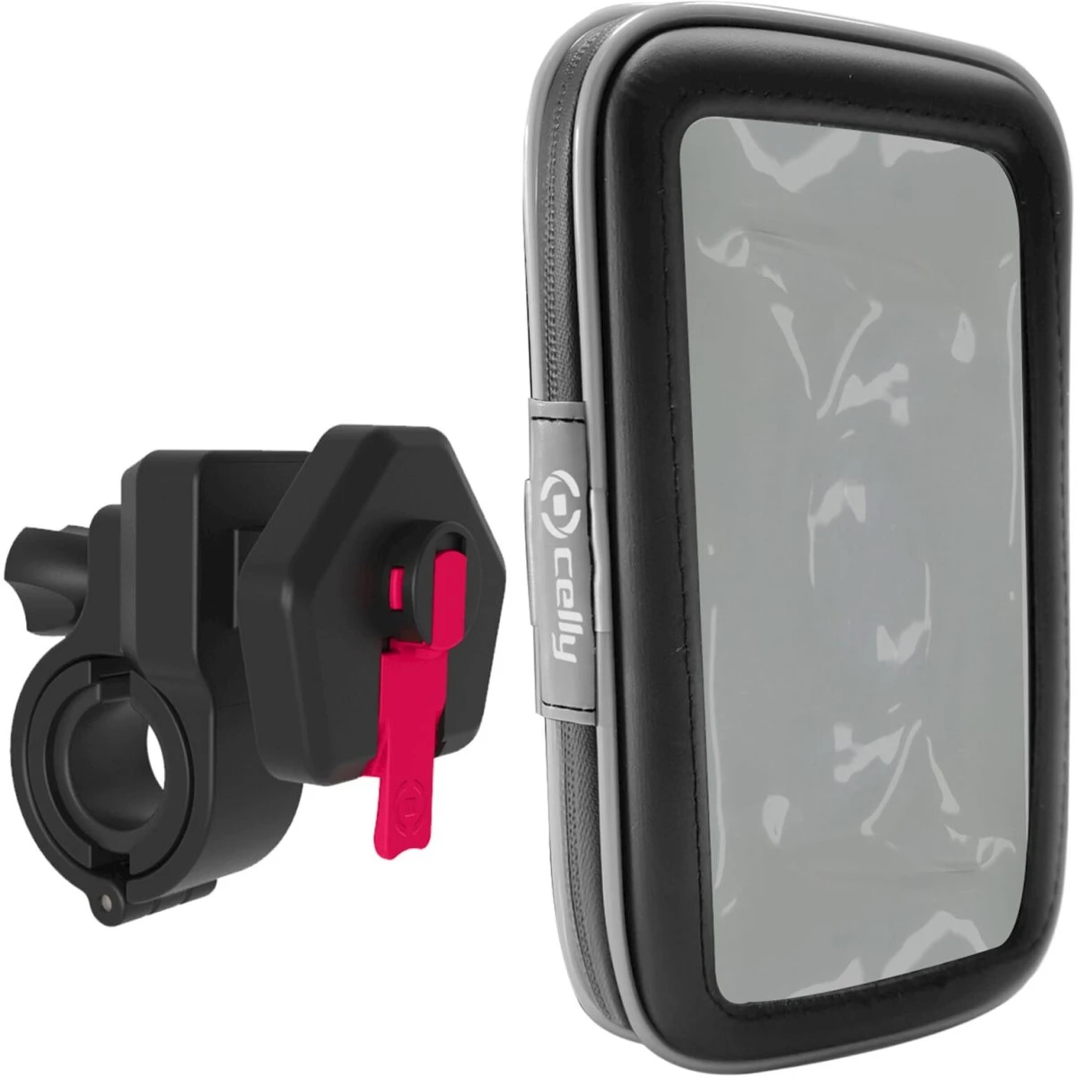 Snap -økosystemet er designet til at fastgøre enhver type telefon til cyklen. Velegnet til enhver type vej, så velegnet til både e-cykelcyklister, racing og gruscyklister, men også til mountainbikere. Stik blot den robuste monteringsplade på enhver telefon- eller telefonomslag, og drej derefter og klik derefter på telefonen i det sikre låsesystem til indehaveren. Du placerer indehaveren på dit styr er kompatibelt for alle størrelser. Også velegnet til e-scootere. Monteringshovedet kan justeres, så telefonen kan monteres nøjagtigt i den ønskede position på rattet. Både i lodret og landskabstilstand. På telefonholderen er der en universel vandtæt telefonomslag (maks. 6.9 ”), som du kan klikke på indehaveren. Berøringsfunktionen på smartphonen opretholdes gennem det gennemsigtige dæksel. Derudover er der en universel monteringsplade inkluderet i pakken, som kan sidde fast på en telefon eller standardtelefonkasse. Dette produkt tilbyder derfor to bekræftelsesmuligheder, indehaveren er direkte knyttet til mobilen eller sin egen standardtelefonkasse eller knyttet til det vandtætte Celly Snap -telefonomslag.