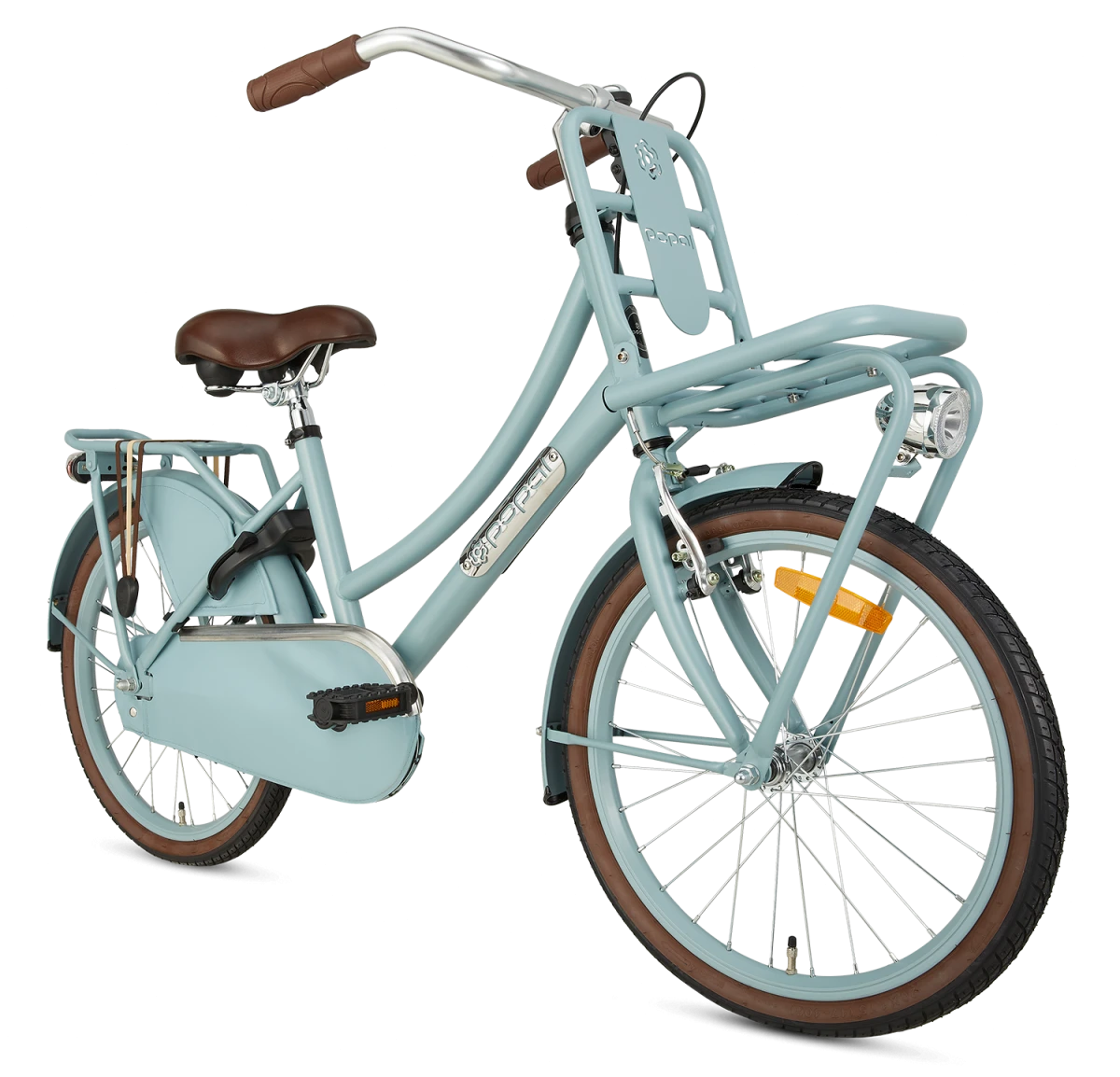 Den traditionelt hollandske basale transportcykel er udstyret med et dobbelt bagageholder. Ingen taske er for meget! Både foran og bag kan let transporteres bagage til skole- eller sportsaktiviteter. Denne flotte pige cykel fra Popal har en hjulstørrelse på 20 tommer. Og er velegnet til alderen mellem seks og otte år. superfunktionel forår på den daglige hollandske basale børnecykel og din cykel superhurtigt fra skole til hjem eller vice versa. Er det lidt for hurtigt? Intet problem, stålrammen kan tage en juling! Fodbremse ibag og V-bremse foran. Jakkebeskytteren forhindrer farlige situationer og revner i tøj. brugerdefineret komfort Alle disse timer på cyklen, så er komfort bestemt et krav. Håndtagene er i hånden, gummien giver også det rigtige greb. Den blødt formede sadel og justerbar i højden. Og så perfekt at tilpasse sig de rigtige længder, så en behagelig tur er garanteret! “Er du ikke på cyklen? Parker cykelens ubekymret og sikkert med den praktiske ringlås. stilfuld og sikker Den traditionelle ramme og udstyret med lukket kædebeskyttelse. De brune farvede håndtag og sadel giver en dejlig farvekontrast. Giv en ring på cykelklokken, og du kører forbi med stil! Ud over at se godt ud på cyklen, ønsker du naturligvis også at blive set i mørke eller i skumringen. Børnecyklen er udstyret med LED -belysning, så du er tydeligt synlig både foran og bag. helt udstyret! Leder du efter en cykel til daglig brug, som har alt hvad du har brug for? Med denne traditionelle transportcykel er cykler ekstra sjove og transporterende bagage meget enkel! Generelle specifikationer: køn: piger Materiale Ramme: stål Fælge: Aluminiumsmateriale Alder Indikation: 6 til 8 år Vægt: Ca. 18 kg Specifikationer Størrelser: hjul Størrelse: 20 tommer Ramme Størrelse: 32 cm Egnet egnet Til kropshøjde: 118-128 cm sadelhøjde Justerbar: Ja Specifikationer Bremser: Type bagbremse: fodbremse og foran V-bremse Belysning: LED-belysning