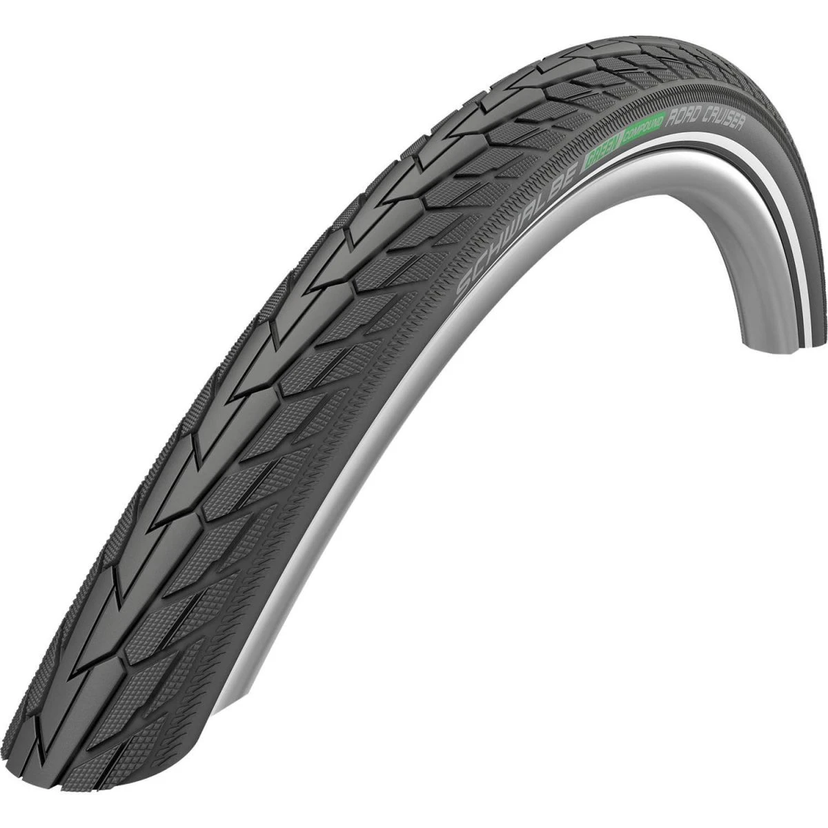 Schwalbe Tire Road Cruiser sort R 20×1.75/47-406. Urban, individuel og dynamisk. Vejcruiseren imponerer med sit behagelige profildesign og det brede udvalg af farver til cykler fra 12 tommer til 28 tommer. Det mest slående træk ved vejkrydseren er på slidbanen og kaldes grøn forbindelse. En gummi, lavet af vedvarende og genanvendt råmateriale, der er så god, at det kan bruges for første gang i et konventionelt dæk. Green Compound er kun tilgængelig i den sorte version.